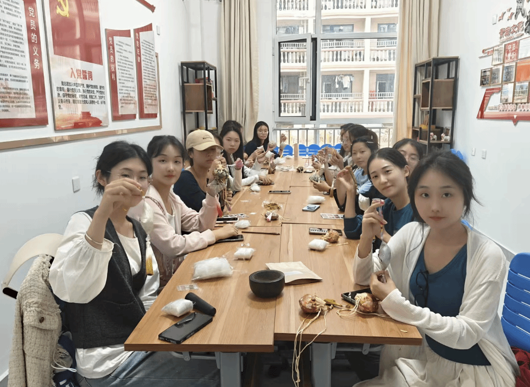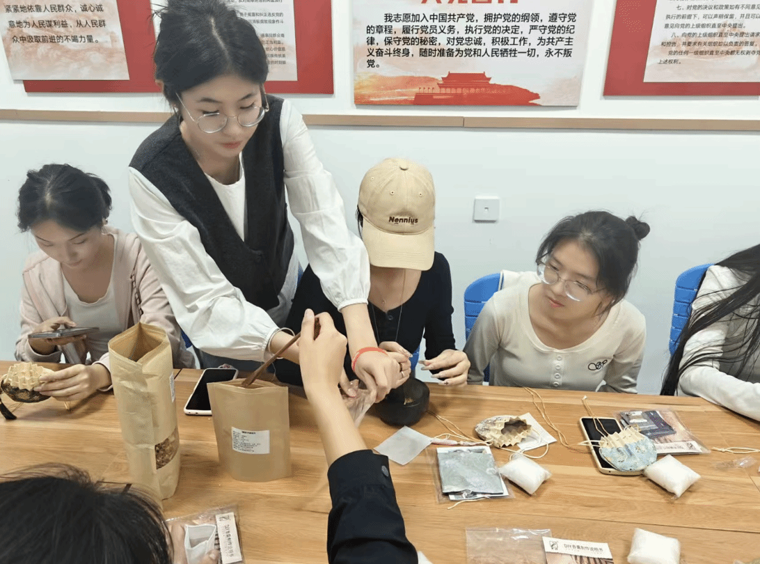 活动现场弥漫着陈皮和桂花的清香,志愿者为大家讲解了香囊的制作过程和功效,并演示制作方法。同学们听得兴致盎然,迫不及待地动起手来,大家一边交流,一边将各种材料巧妙搭配、制作,不一会儿,几个样式各异、色彩斑斓的香囊陆续完成,同学们互相展示作品,分享制作巧思,脸上洋溢着满满的成就感。