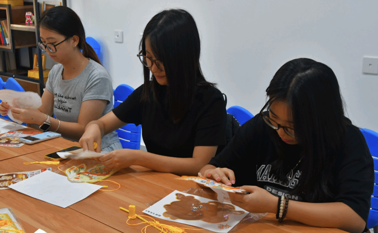 活动准备了灯笼的制作材料和工具,杨凯丽在指导同学们制作灯笼的同时简要介绍了中秋节的悠久历史与灯笼所承载的团圆、祈福的文化内涵。在温馨愉悦的氛围中,同学们发挥自己的想象力和创造力,用彩纸流苏等材料,创造出了独属于她们自己的灯笼。一盏盏饱含巧思的灯笼次第亮起,流淌出馥郁的节日温情,同学们彼此分享着制作时的感悟与经验,自豪地展示着自己的得意之作,现场处处回荡着欢快的笑声。