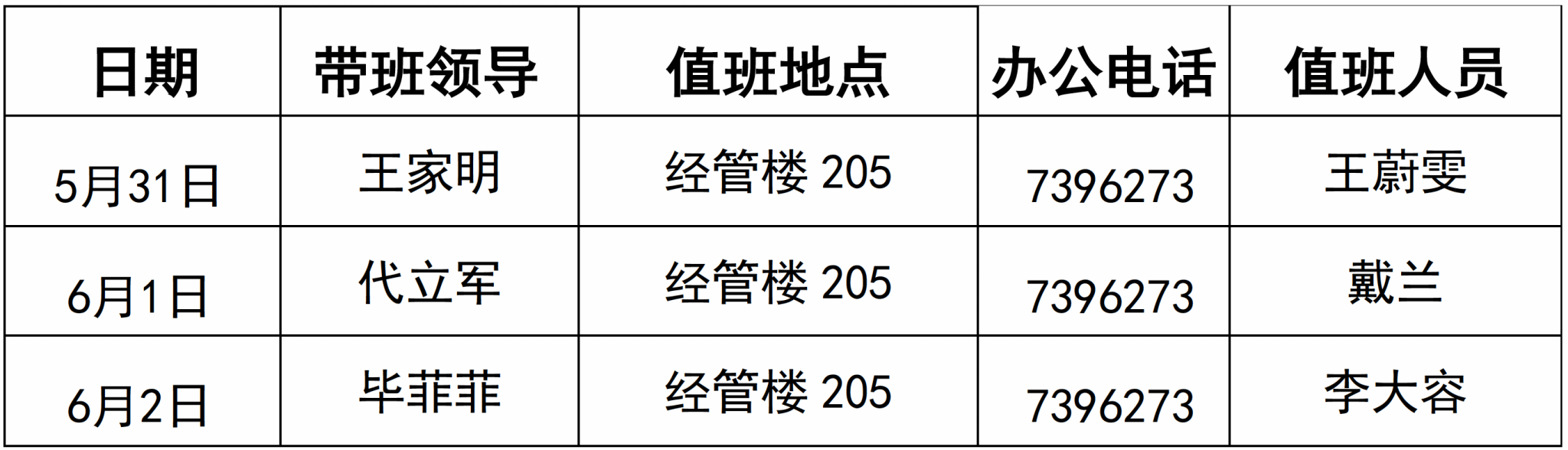 3.值班人员提前一天到205领取钥匙,值班结束后交接给次日值班人员。